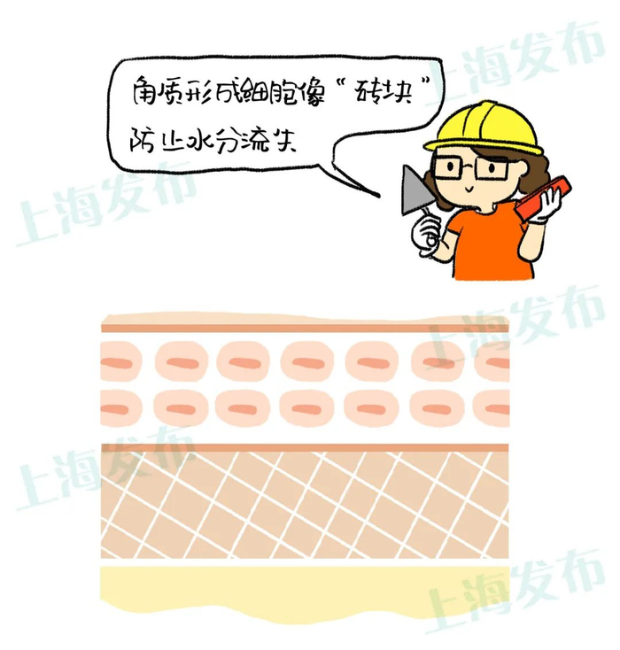 大家经常将角质层比喻为“砖墙结构”。“砖块”代表角质形成细胞;“灰浆”则是指角质细胞间隙中的脂质。