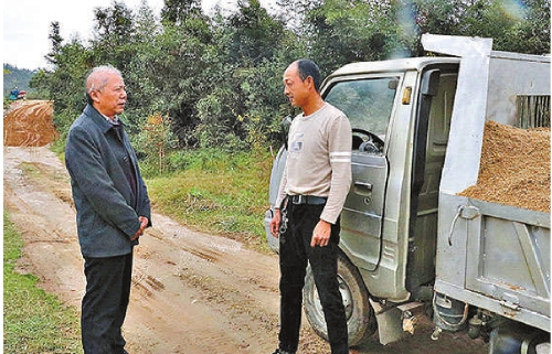 杨作柱(左)与村民交流