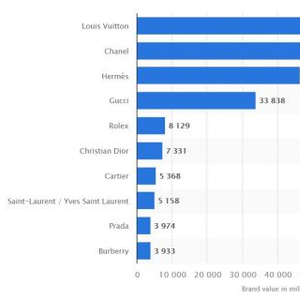 LV品牌价值为757.3亿美元,高于香奈儿1.6倍