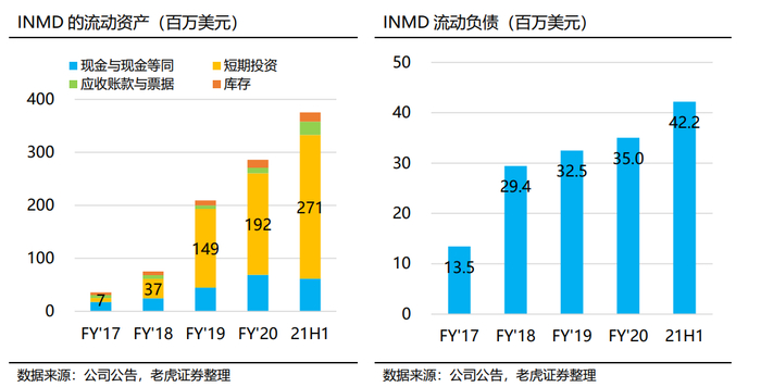 公司的资产质量较高,其中流动资产至21H1达到3.33亿美元,对应流动负债为4217万美元。流动负债中,现金、现金等同以及短期投资占比超过89%。
