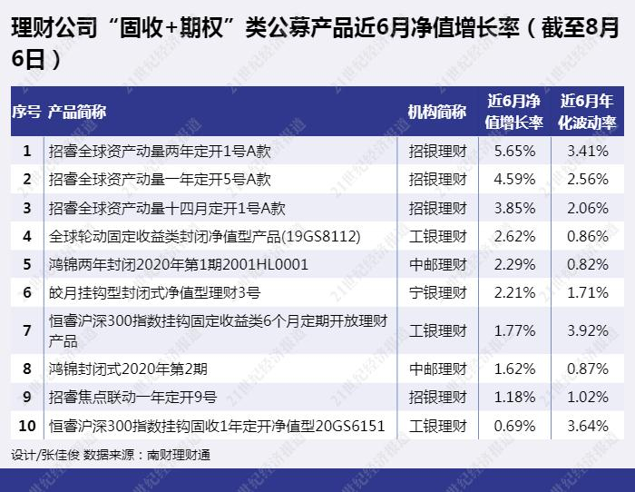 一、南财理财通【理财风云榜】理财子公司“固收+期权”产品近6月净值增长率榜单