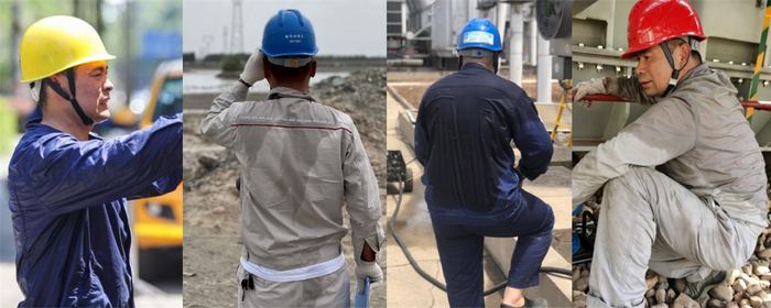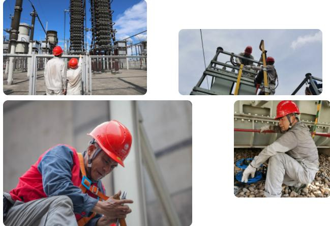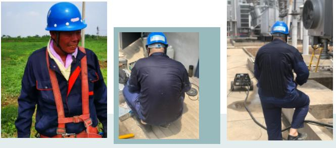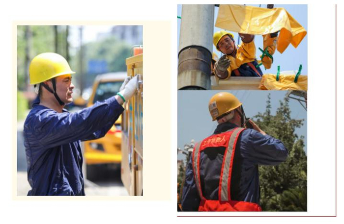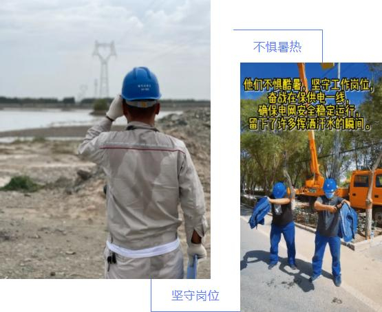 安徽凤台县供电公司(上左)、蚌埠供电公司(上右)、东至县供电公司(下)员工工作“汗”服照。(郭宇昊 陈诚 姜秀玲)
