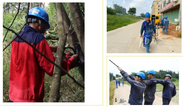 左:8月5日,江西宁都县温度达到37度,宁都县供电公司员工对10千伏岗车线牛牯迳支线1.2千米输电线路进行清障,确保群众清凉度夏。(郭良生)