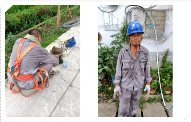 右:7月20日,江西赣州市南康区供电公司员工冒着36度的高温,对10千伏坪塘北I线进行综合检修。施工队员顾不上擦拭额头上冒个不停的汗珠,冒着高温酷暑,争分夺秒地施工。(钟利霞)