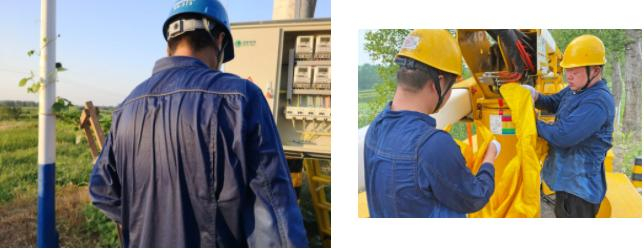 左:连日来,安徽寿县地区持续高温,为了让广大村民抽水用电更安全,寿县供电公司三觉中心供电所员工冒高温安装电表。(平萍 李大龙)