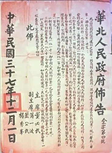 1947年夏季,中国人民解放军在地方部队和人民群众的配合下,取得了解放战争的重大胜利,各地区之间的贸易联系和物资交流日益增多,但各解放区当时流通的货币有300种之多,成为经济发展和贸易往来的重大障碍,给野战军机动作战也带来很大困难,统一各解放区的货币工作刻不容缓。