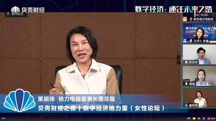 8月9日,由新京报贝壳财经主办的“数字经济:通往未来之路”夏季峰会在线举行。在数字经济“她力量”女性论坛上,格力电器董事长兼总裁董明珠奥运冠军、乒乓球女子单打大满贯得主邓亚萍,中国射击运动员、东京奥运会10米气步枪女子个人/混合团体冠军杨倩,知名电商主播、全国青联委员、全国三八红旗手薇娅就杨倩等小将的奥运表现、奥运期间国乒赛事、女排精神以及“年龄焦虑”进行了跨界对谈。