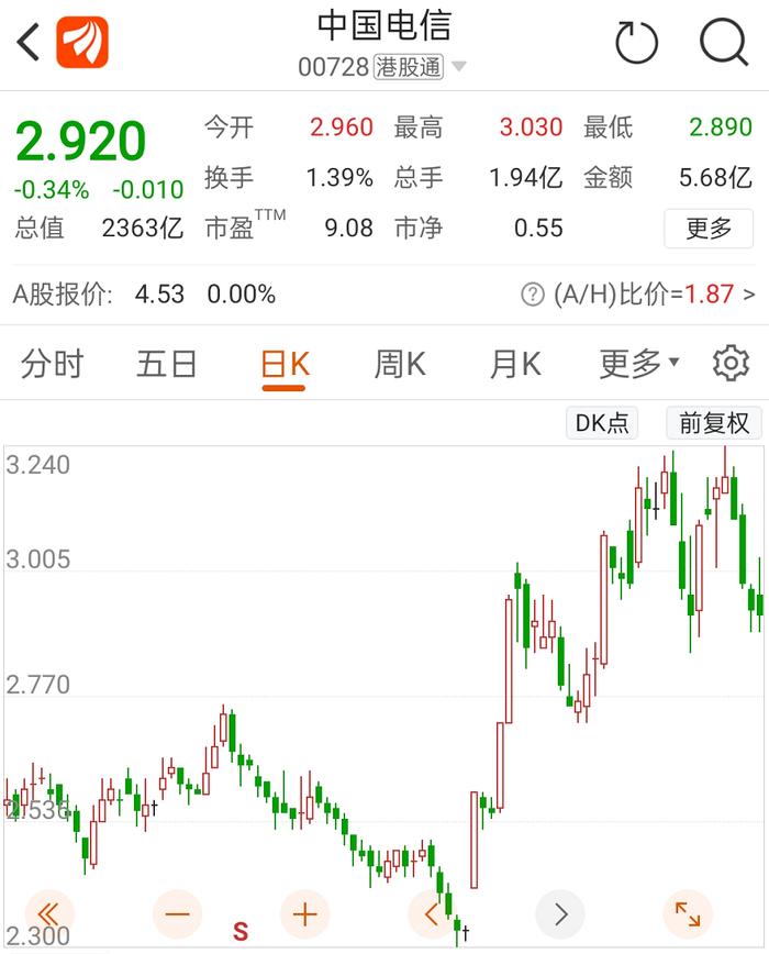 值得注意的是,中国电信早已在香港上市,截至8月6日收盘,中国电信的港股股价仅为2.92港元,相比A股发行价折价幅度超46%,总市值为2363亿港元,一定程度上或将限制其在A股上市后的想象空间。