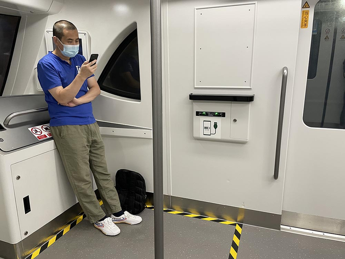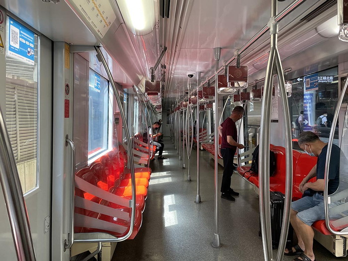 15号线弱冷车厢 本文图片均为澎湃新闻记者 陈逸欣 图