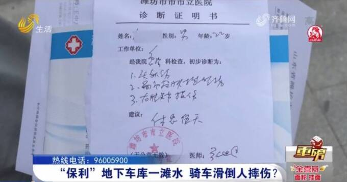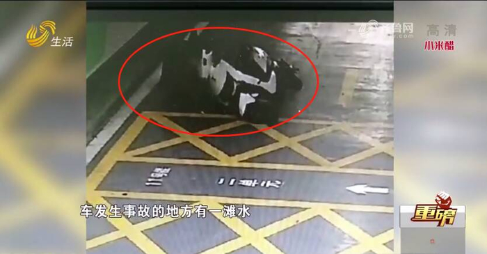 潍坊:谁负责?地下车库一滩水致骑车人滑倒摔伤!