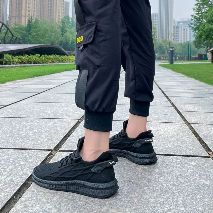 CARTELO卡帝乐飞织跑鞋采用时下流行的飞织鞋面,再加上内里的透气网布,鞋子的透气性特别好。