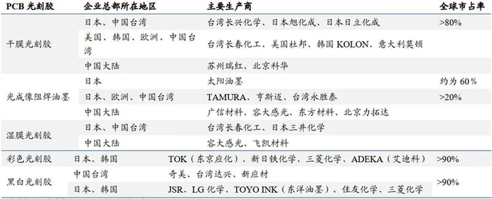 在光刻胶领域相对较为容易的 PCB 光刻胶,中国均有厂商在各个领域实现了突破,但是根据前瞻产业研究院的整理,全球的主要 PCB 供应商还是以日本为主导。