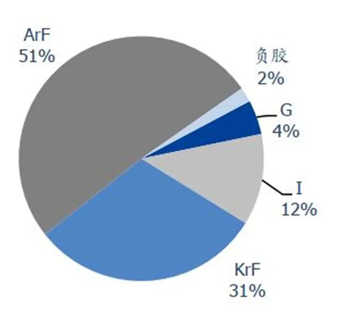 另外,根据 IC 光刻胶所能使用到的制程节点来看,随着制程的逐步增长,所用的IC 级光刻胶品种将会逐步发生变化,并且随之带来的 IC 光刻胶的价值量也将会发生巨大的变化(单位价值量:ArF>KrF>I>G)。