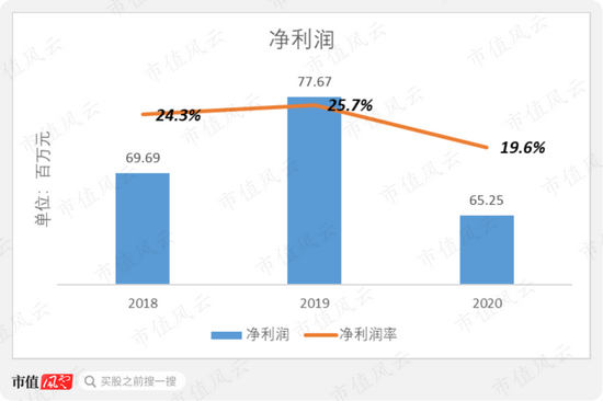 2020年,冰峰饮料实现净利润6525万元,较去年同期下跌16.0%;净利润率为19.6%,同比下跌6.1个百分点。