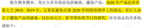 公司解释称,为了避免再次出现像2020年初因疫情停工的情况,公司加大了罐装产品的储备,以应对元旦、春节等传统节日的销售。