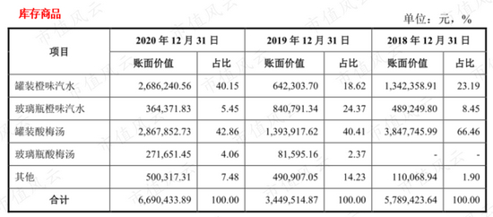 截至2020年末,罐装橙味汽水库存商品的账面价值为268.62万元,较去年同期增长318.2%。