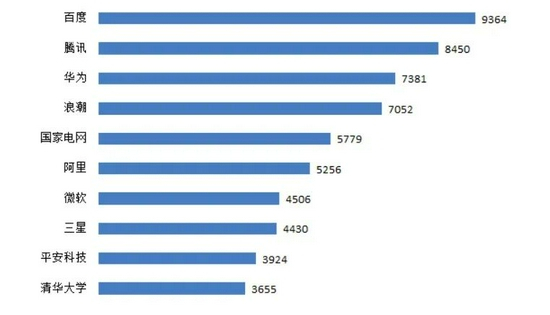 2017年,百度宣布“all in AI”后,在专利数量上,连续三年夺得桂冠。