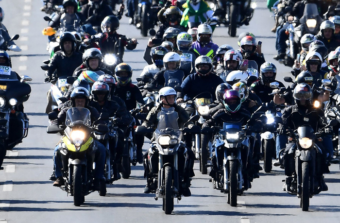 巴西总统博索纳罗带领支持者举行摩托车集会