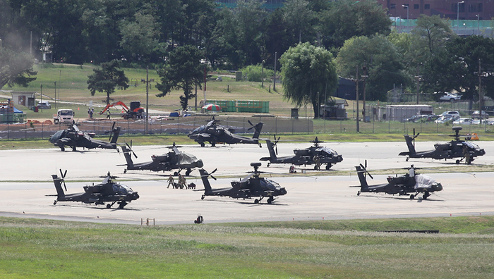 当地时间2021年8月9日,韩国西海岸地区平泽市,汉弗莱斯营地。韩国多名政府和军方消息人士8日说,韩国政府初步决定如期举行韩国与美国的年度夏季联合军事演习,考虑到新冠疫情等因素,夏季军演规模将比今年春季的联合军演小。
