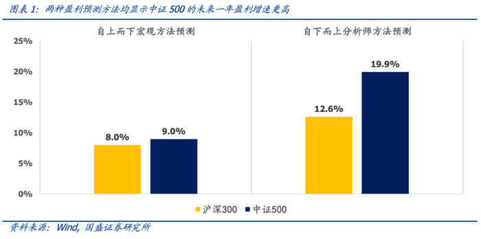 1、盈利方面中证500占优。目前我们的自上而下宏观模型和分析师模型预测500的预期盈利增速都高于300,两种盈利预测方法均显示A股未来盈利有较强的韧性,且中证500的盈利优势更大。