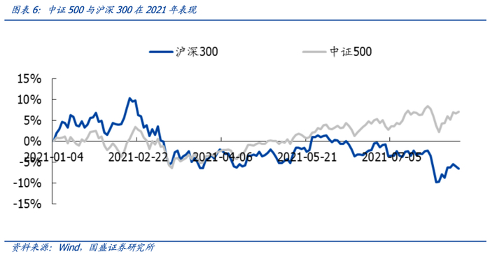 1、2021年以来收益表现占优。中证500在2021年以来截至8月6日总收益7.0%,同一区间沪深300收益率为-6.6%。
