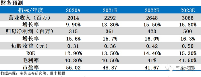 ◆该公司为食品醋龙头,渠道和营销均有改善,毛利率为40%,ROE为13%。