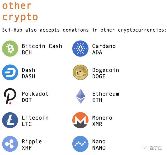 所以这一次,Sci-Hub除了中国特供的支付宝外,在国际上只支持数字加密货币支付渠道。除了比特币外还添加了以太坊、狗狗币等10种数字货币的支持。