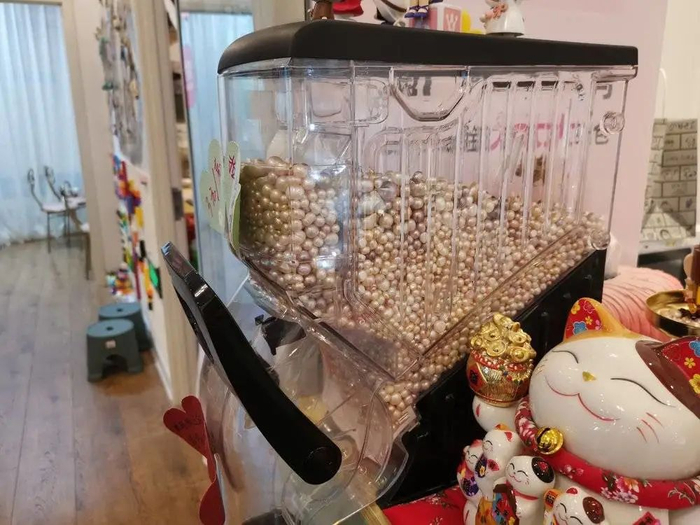 超姐店里,有一个珍珠自取售卖机,全部来自店里自开的珍珠
