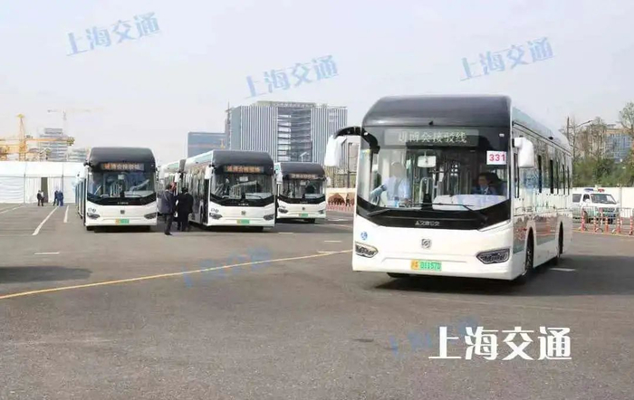 海蓝色也是上海公交车的主要颜色之一,它们大多来自浦东↓