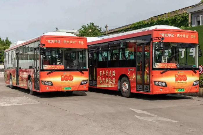 为庆祝中国共产党成立100周年,今年以来,上海公交行业陆续推出“红色专列”,红红火火格外应景↓