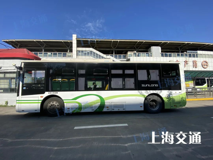 绿色是上海公交车的主要颜色之一,绿色公交车大多来自浦西,崇明也有↓