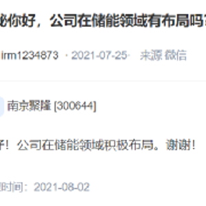 事情的起因是,今年7月25日,有投资者在互动平台上提问南京聚隆董秘公司在储能领域是否有布局,南京聚隆在8月2日回复予以肯定。