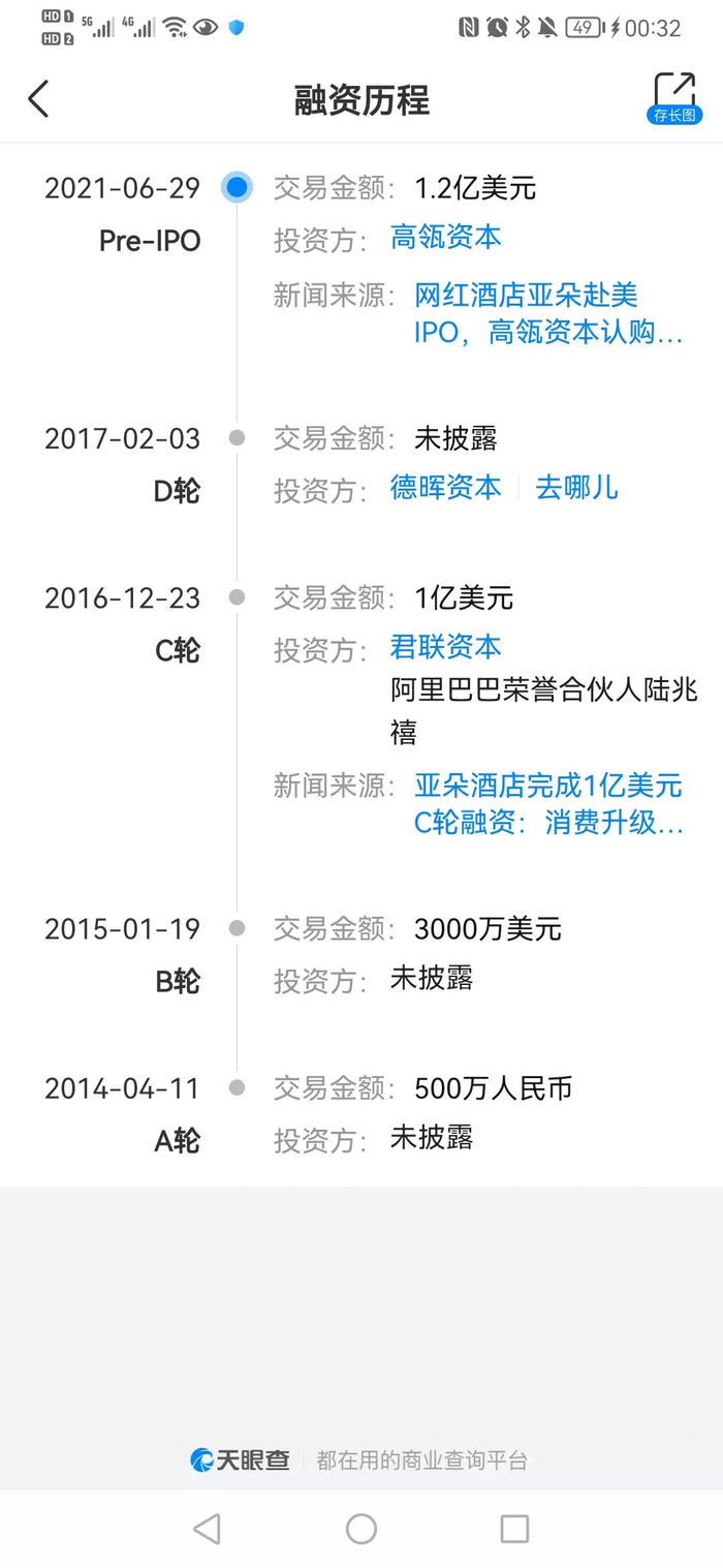 天眼查数据显示,此前,亚朵酒店完成了多轮融资,投资方包括君联资本、德晖资本、携程(去哪儿)以及阿里巴巴前CEO陆兆禧个人。