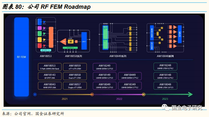 在RF FEM方面,除了LNA Bank和NR LFEM之外,艾为未来还有望与滤波器厂商合作,推出更丰富的接收模组产品。