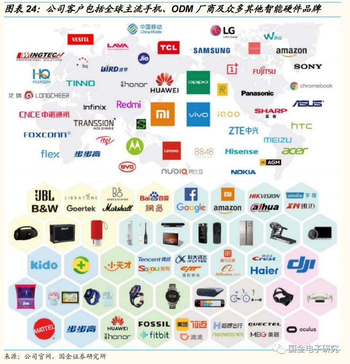 客户资源丰富。公司凭借可靠的产品质量和细致的客户服务,已被纳入众多知名品牌客户的合格供应商名录,覆盖了包括华为、小米、OPPO、vivo、传音等知名手机厂商,华勤、闻泰科技、龙旗科技等知名ODM厂商,以及JBL、大疆、海康威视、亚马逊、等众多除手机以外的新智能硬件客户。公司依靠长期以来培养的客户资源和市场口碑,在推广新产品时将更具优势。