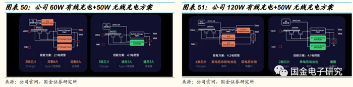 另外艾为还设计了60W有线充电+50W无线充电方案,可以降低对充电线和连接器的过流能力、节约PCB空间。120W有线充电+50W无线充电方案,相同电池体积情况下,手机续航增加约15%;相同电池容量情况下,手机可以更轻薄。