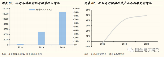 马达驱动芯片销售大幅增长、毛利率快速上升。2019年,公司马达驱动芯片销售数量较2018年数量增长约14倍,2020年销售收入同比增长149%,公司产品在部分手机品牌客户新上市旗舰机型中得到广泛应用,同时在部分中低端机型中替代了原有的境外供应商产品,市场逐渐打开,毛利率快速提升,2018年毛利率为-2.41%,2020年达到49.4%。