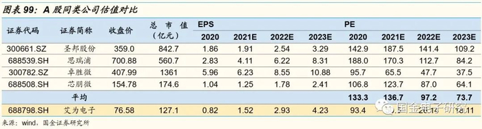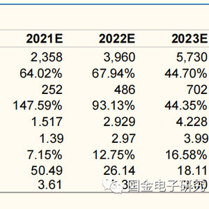 预测公司2021-2023年EPS分别为1.52、2.93、4.23元,发行价(76.58元)对应PE分别为50.5、26.14、18.11倍。公司在手机芯片领域深耕多年,具有较好的技术研发和产品拓展能力,未来在新兴需求驱动及国产替代拉动下,具有较好的成长空间,给予公司2022年90倍PE估值,“买入”评级,目标价263元。