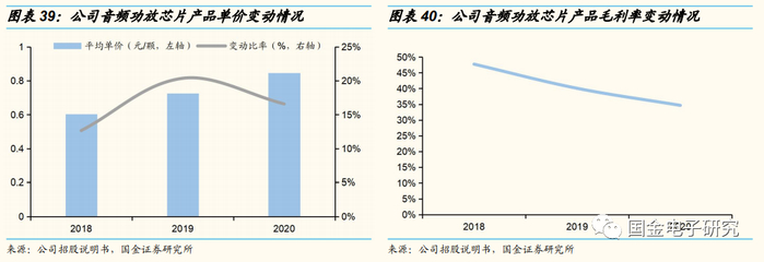 公司音频功放芯片高端产品销售量持续增加,提升平均单价逐年提升,而高端市场竞争激烈毛利率低导致整体毛利率下滑。公司2019年、2020年音频功放芯片产品单价分别同比提升20.37%、16.59%,原因为高端产品Smart K和Digital Smart K出货量大幅增加,2018年销售占比13%的两类产品于2019年增至43%,2020年占比进一步增加。而由于高端市场竞争,音频功放芯片产品单位售价上涨幅度不及单位成本上升幅度,故引起毛利率逐年下降。