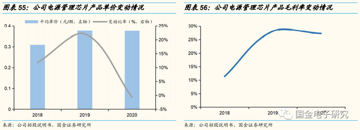 高端产品出货提升带动电源管理芯片平均单价提升,产品迭代引成本降低、毛利率提升。公司2018年、2019年电源管理芯片平均单价分别提升11.75%、22.03%,主要系2018年单价较高的闪光灯驱动和串联背光LED驱动出货量提升,2019年高端闪光灯驱动芯片出货量进一步增加。毛利率方面,2019年电源管理芯片产品毛利率较2018年大幅上升,主要系公司对电源管理芯片产品系列进行了迭代升级,降低了产品成本,2020年该项业务毛利率保持平稳。