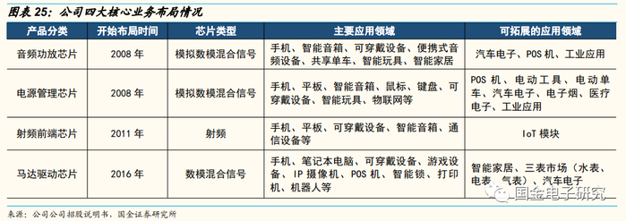 公司成立于2008年,是一家专注于高品质数模混合信号、模拟、射频的集成电路设计企业,产品广泛应用于智能手机、可穿戴设备、平板电脑、笔记本电脑、智能音箱等智能硬件。公司曾连续多年获评“十大中国IC设计公司”,如今已成为国内智能手机中数模混合信号、模拟、射频芯片产品主要供应商之一。