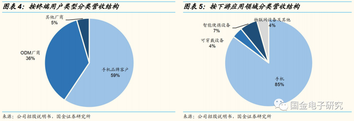 公司产品主要应用于手机领域,充分受益手机快速迭代下芯片需求增长。公司营收按终端用户类型分类主要集中在手机品牌客户和ODM厂商中,2020年H1两者合计占比95%;按下游应用领域分类,公司营收主要集中在手机领域,占比为85%,在可穿戴设备、智能便携设备、物联网设备等领域占比约15%。公司产品在手机领域应用比例较高主要系手机出货量和市场规模远大于其他类型电子设备,并且手机产品所需芯片数量多且种类丰富,快速迭代为国产化替代带来较多机遇。