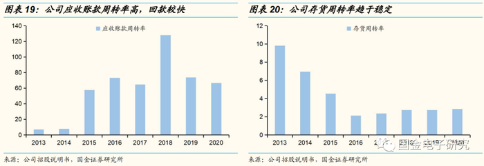 公司回款能力较强,存货周转率趋于稳定。1)公司应收账款周转率多年来保持在60以上,由于公司采用经销为主、直销为辅的销售模式,给予客户的账期总体较短,应收账款余额整体规模较小,因此应收账款周转率较高。2)公司存货周转率较低,主要是因为公司为应对快速增长的市场需求,结合市场预测及库存情况而适当增加了存货规模。近年来公司存货周转率保持稳定。