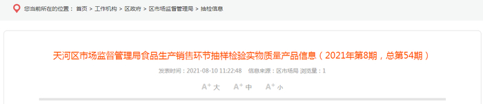 原标题:广州市天河区市场监管局发布2021年第8期食品抽检信息