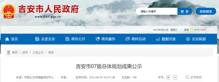 原标题:吉安市07版总体规划成果公示