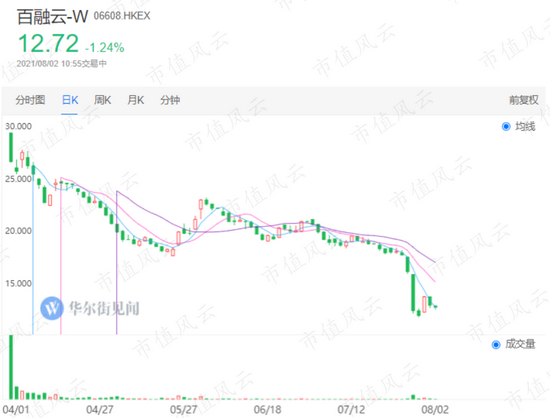 从31.8港元的发行价,下跌到12.88港元(截至7月30日收盘),跌幅接近60%,百亿市值几乎腰斩。