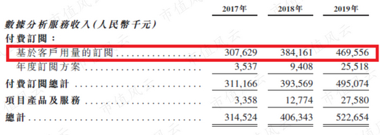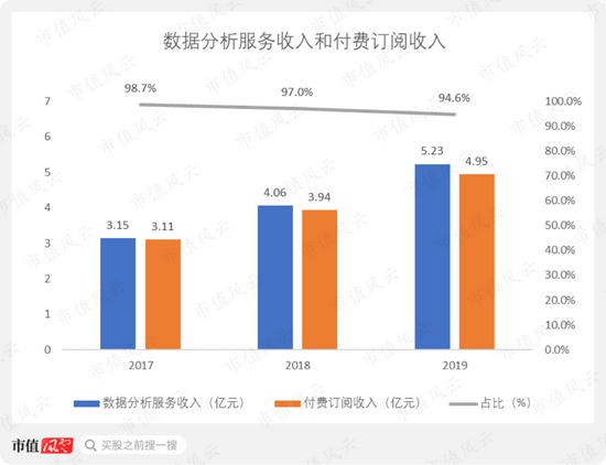 2017-2019年,付费订阅收入从3.11亿元增长至4.95亿元,其占同期数据分析服务收入的比例一直保持在90%以上。