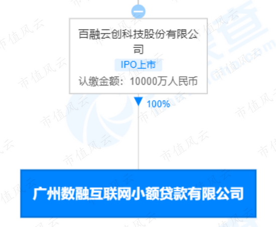 根据天眼查APP的资料,实际运营榕树贷款APP的,是一家名叫广州数融互联网小额贷款有限公司,是百融云的全资子公司,从名字上看,这个全资子公司应该从事的是放贷业务。