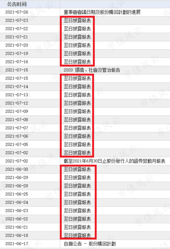 (2021年7月15日《百融云:翌日披露报表》)