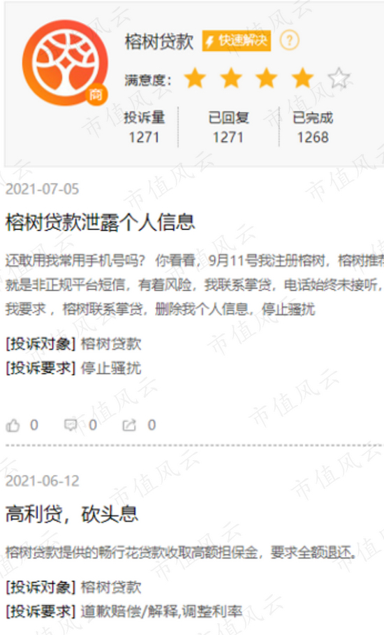 风云君在黑猫投诉平台查到,榕树贷款目前涉及的投诉量,累计超过1200个,涉及的内容包括个人信息泄露、高利贷以及砍头息等。